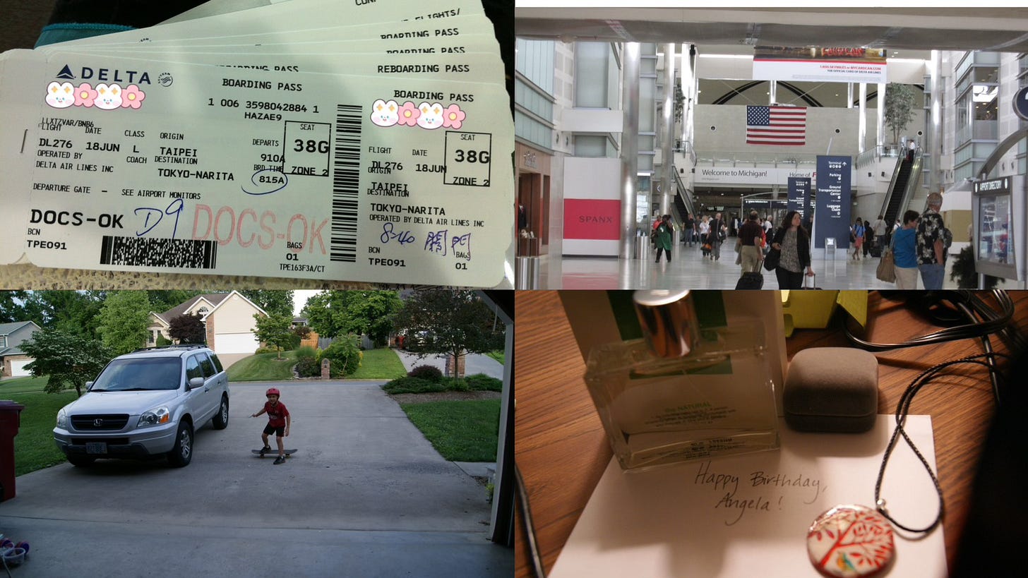 Lisa 住在美國南方的田納西州,我要先到成田機場轉機,再到底特律、亞特蘭大,最後才抵達離 Lisa 家最近的千里達機場。由於當時我根本沒有長途飛行的經驗,出發前我最擔心的事情是行李是否能順利抵達。